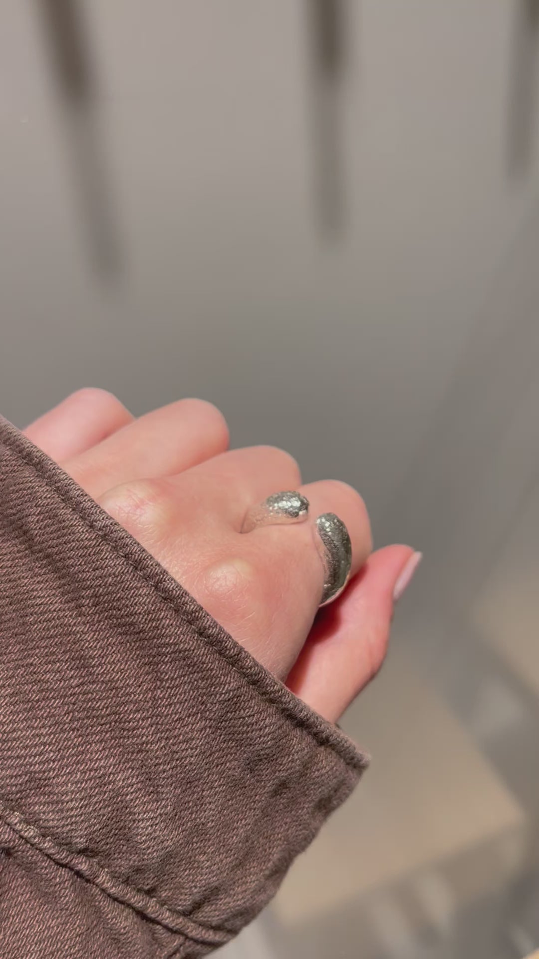 Bold yet fluid, this open ring plays with contrast - soft curves in solid silver, movement captured in metal. Its sculptural, freeform shape is carved by hand, making each piece feel spontaneous, like a gesture frozen in time.