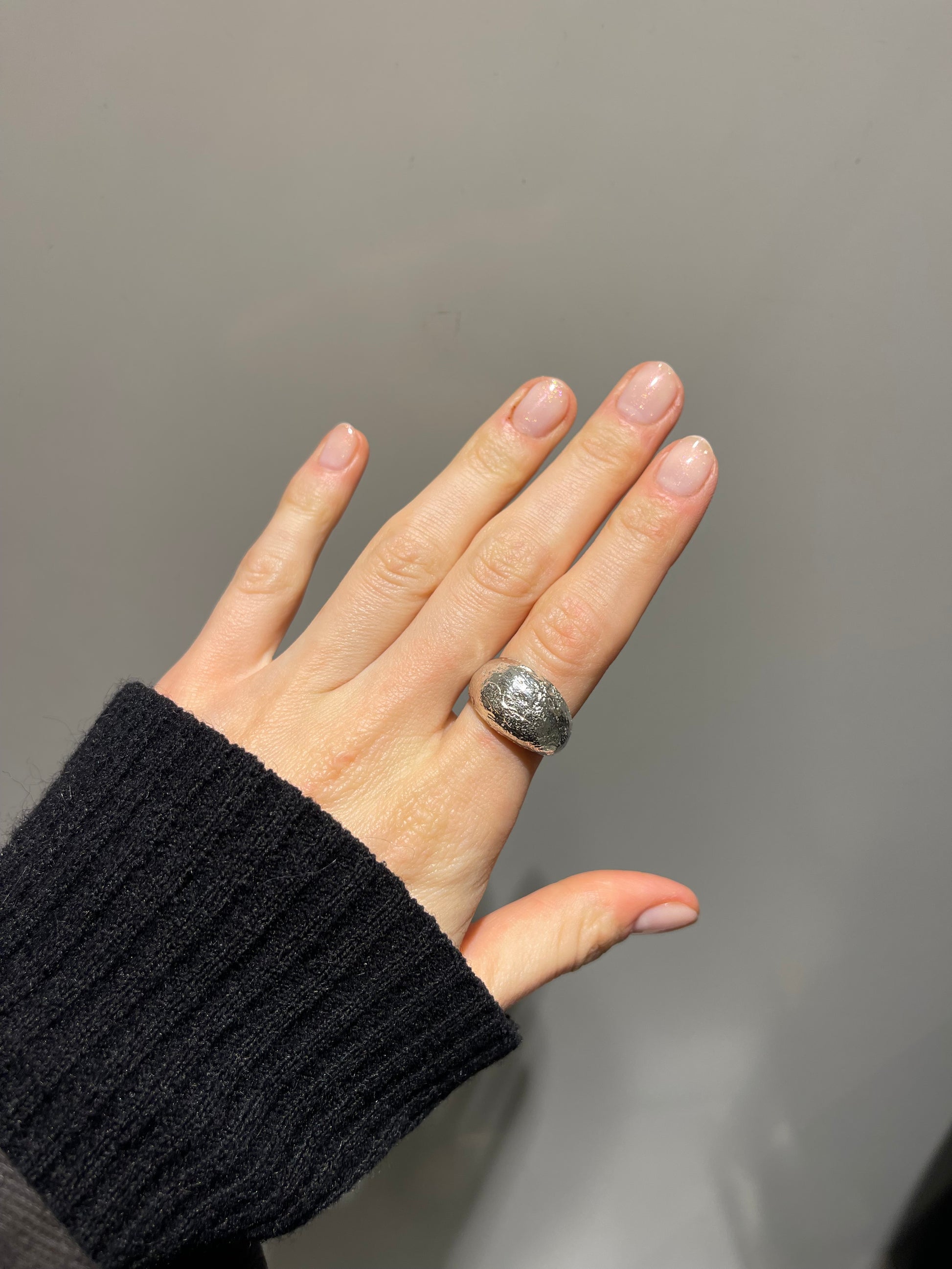 Smooth, bold, and sculptural. This chunky silver dome ring is all about presence and form. Hand-carved and cast in 925 solid silver, it has a soft curve and a weighty feel that makes it a timeless statement piece. Handmade in London.