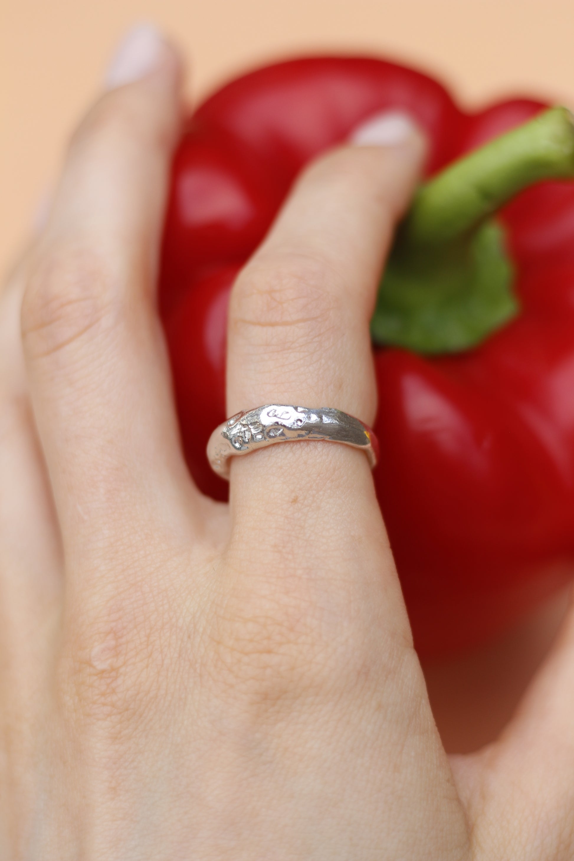 This minimal ring is great for stacking. Can be adjusted from size 6 US up to size 9 US.