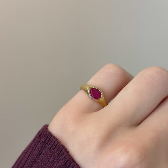 Lab-Grown Ruby Oval Shape Gold Plated Ring