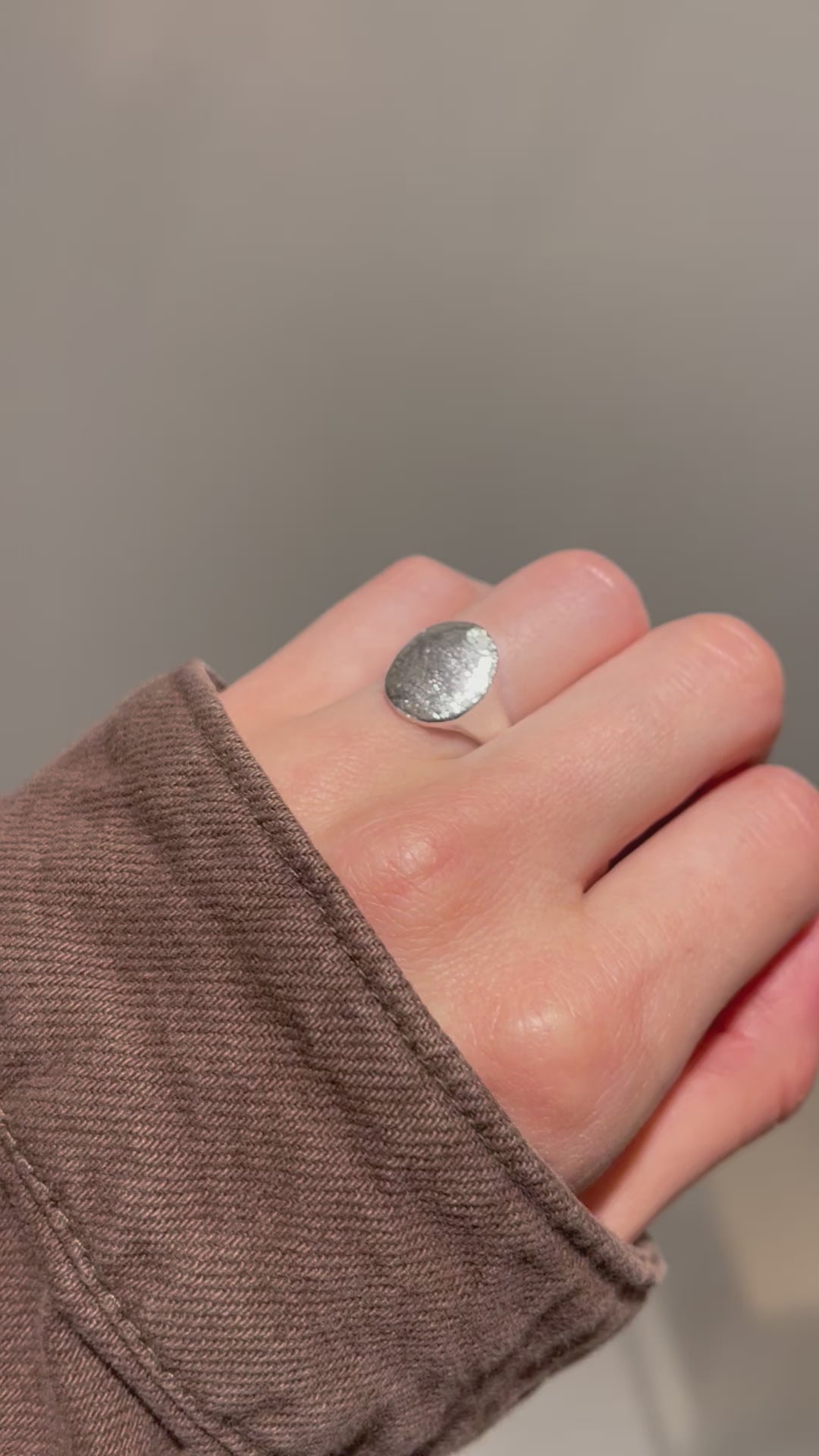 Handmade in London using the Lost-Wax Casting method with 925 Sterling Silver. This ring can be personalised with hammered letter engraving (up to 3-4 letters).