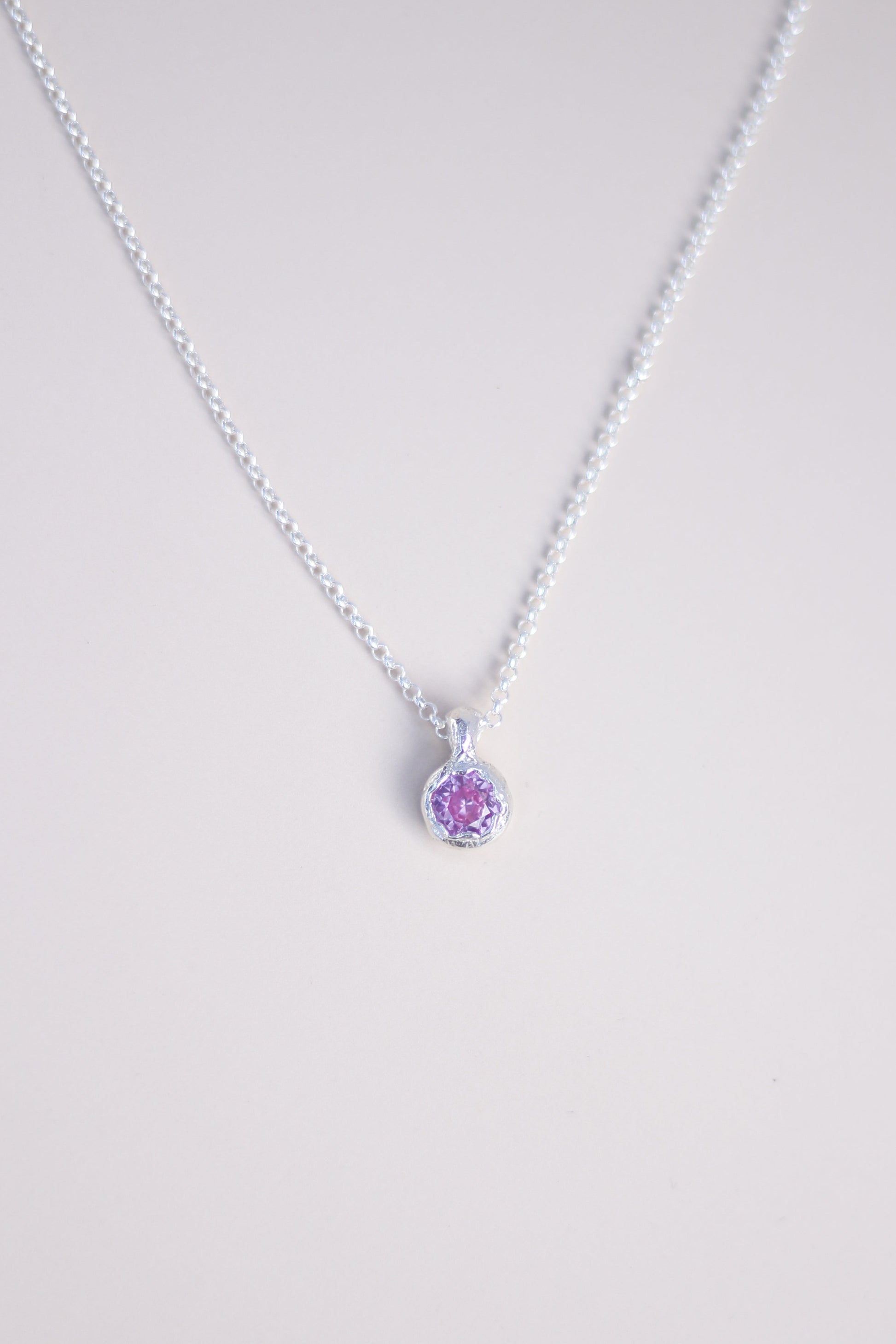 Pink Lab-Grown Sapphire Pendant Silver Necklace