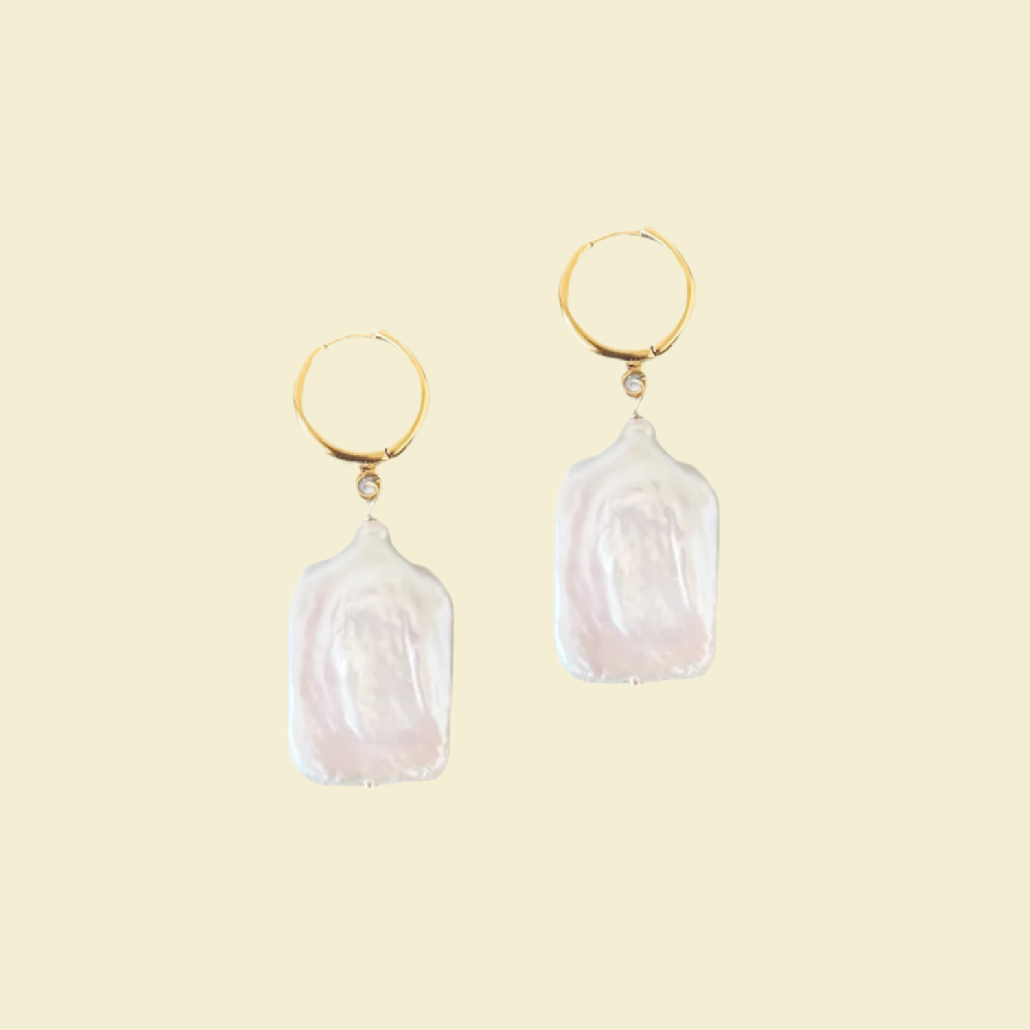 Square Pearl Earrings are made with Natural AA Grade Baroque Cultured Pearls and 925 Sterling Silver huggie click closure. Handmade in London.