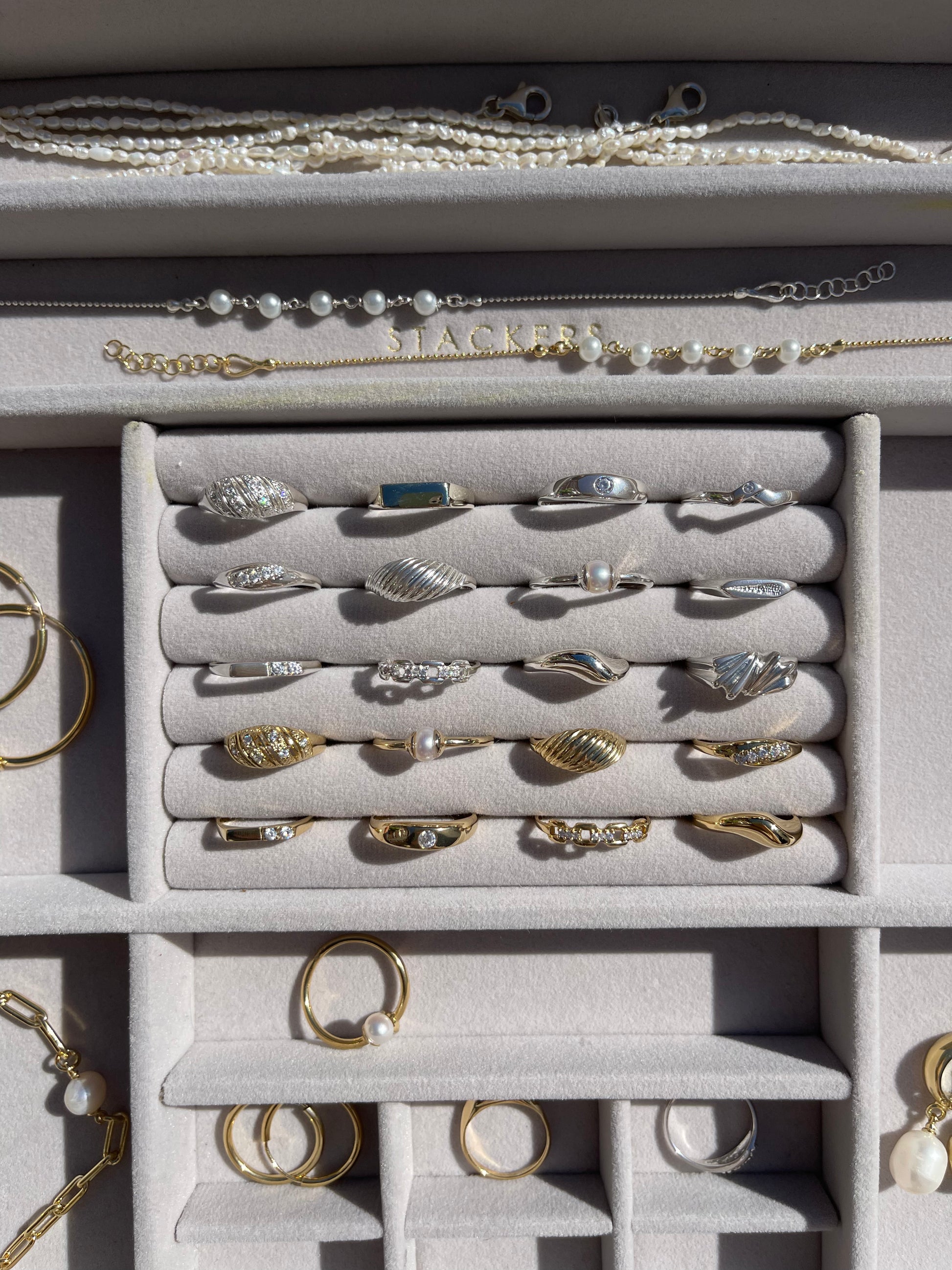 We recommend not wearing these pieces while showering, working out, swimming, or visiting a sauna. To extend the fresh look of the products, store your pieces in dry, cool spaces. The best cleaning tool for silver and solid gold would be a specialized polishing, cleaning cloth. Do not use a polishing cloth on gold-plated jewellery, as it will take off the gold coating.