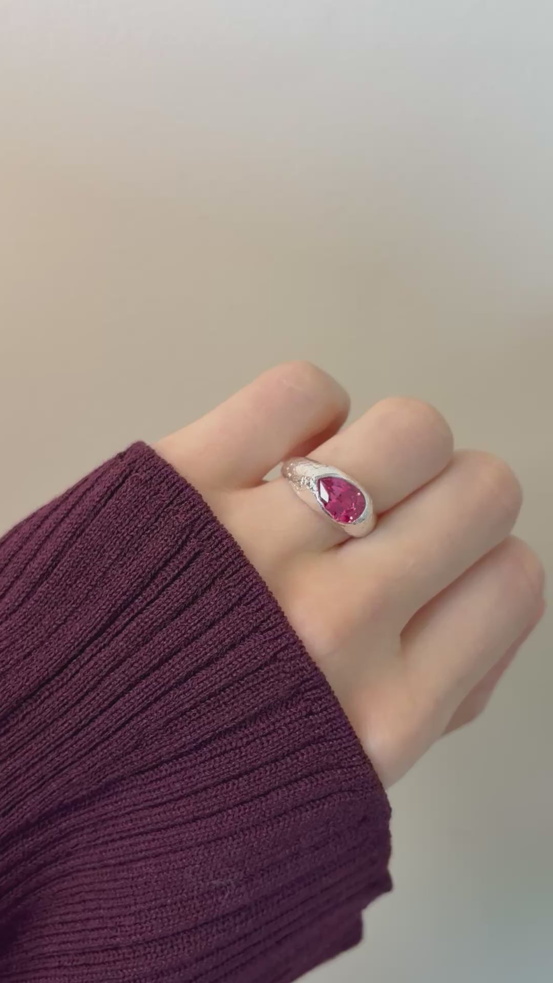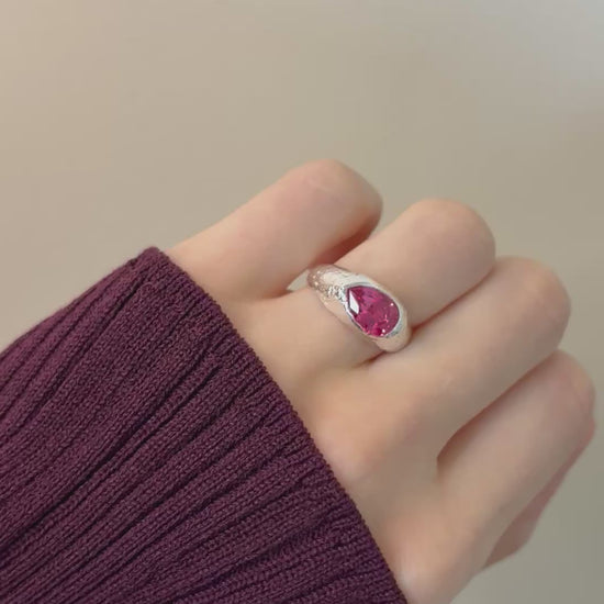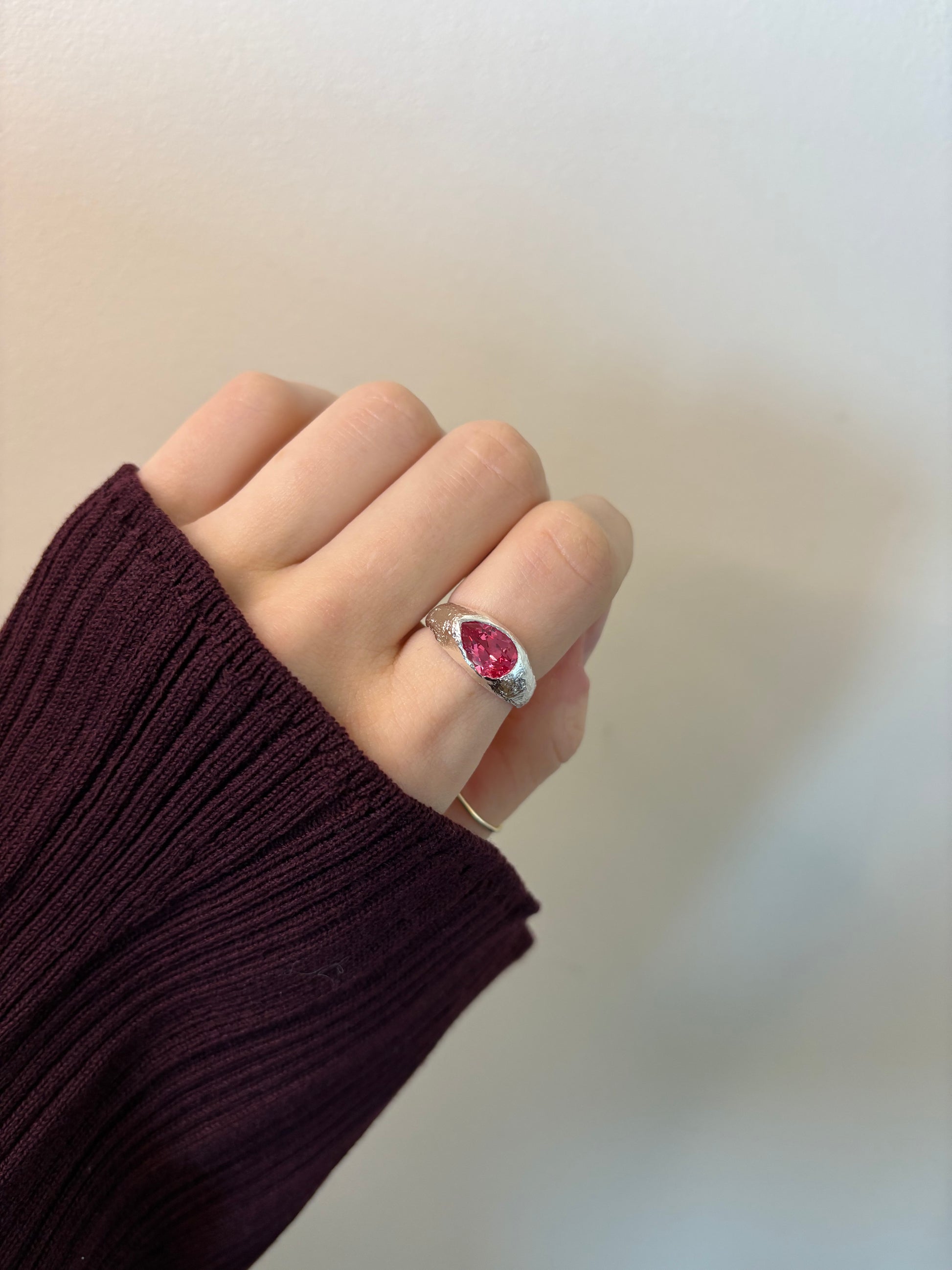 Vivid Pink Lab-Grown Sapphire Pear Shape Silver Ring