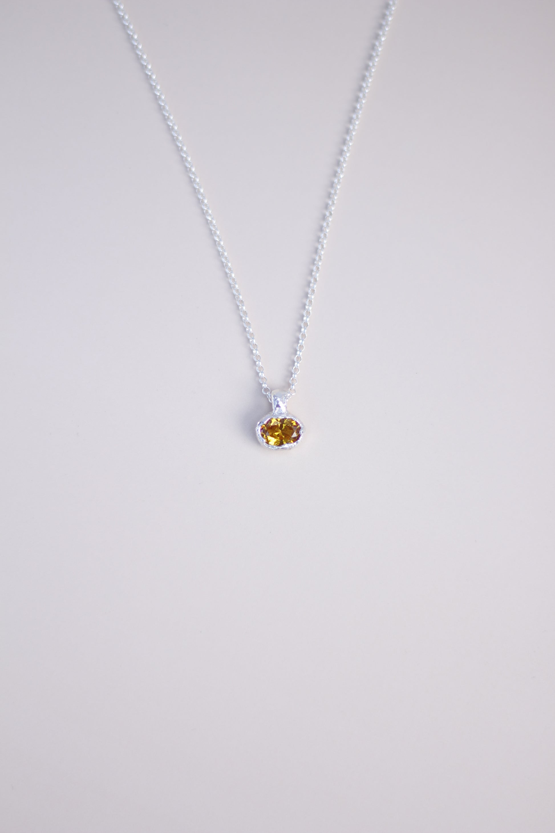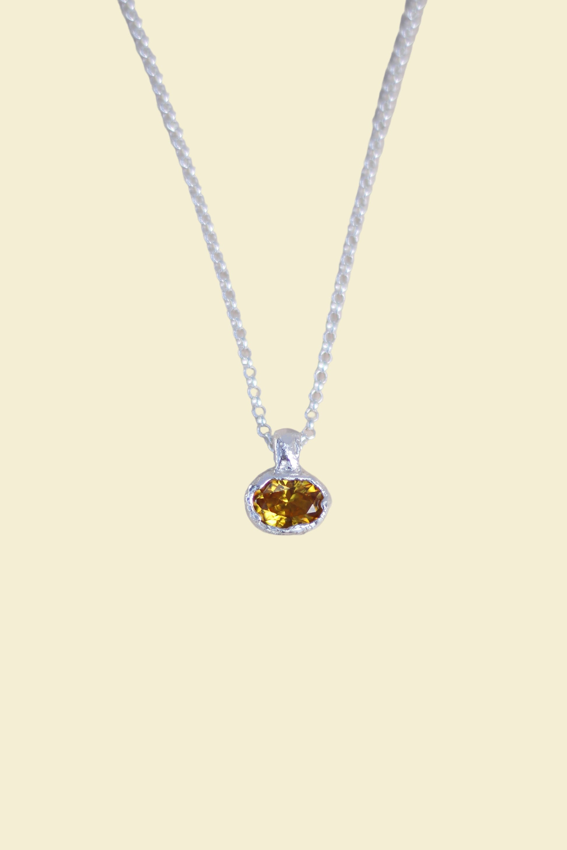 Yellow Lab-Grown Sapphire Oval Silver Necklace